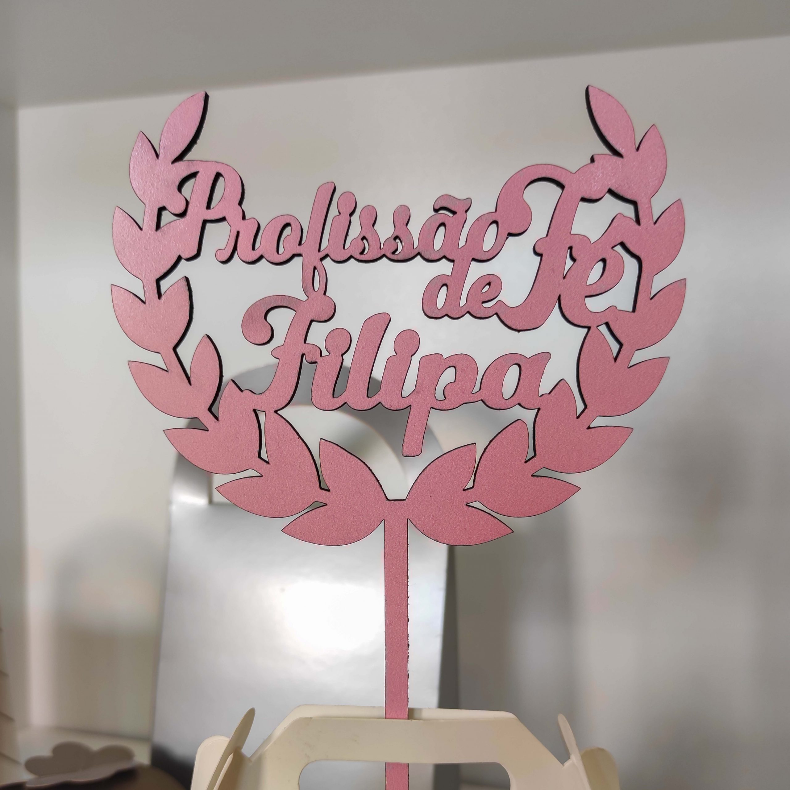 Topper para Bolo “A Minha Comunhão” MDF Cor de Rosa 11x20cm com possibilidade de ser gravado com nome.